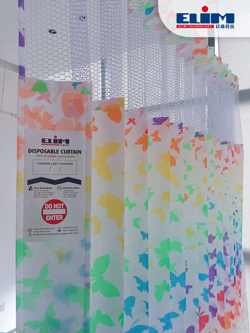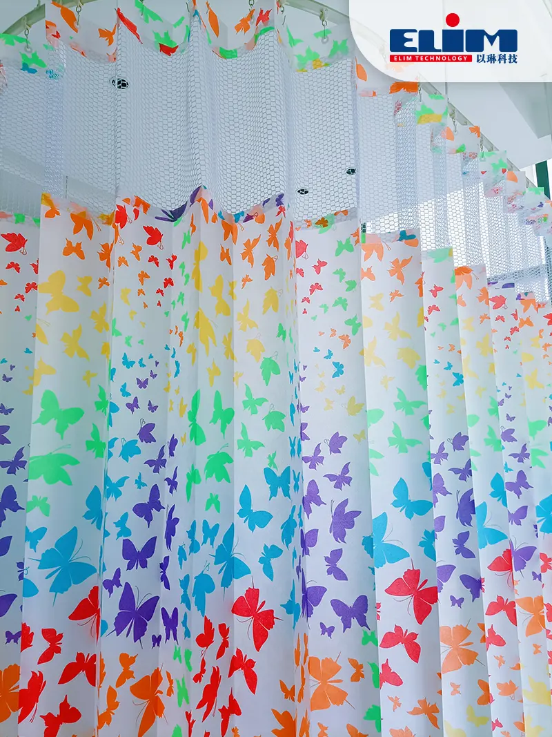 ELIMブランドのデザインは、遊び心のある蝶のパターンを備えており、視覚的に魅力的な要素を空間に追加し、子供にとって威圧的ではありません。カーテンのポリエステルメッシュ材料は耐久性があり、掃除が簡単で、忙しい医療環境向けの実用的で費用対効果の高いソリューションになります。